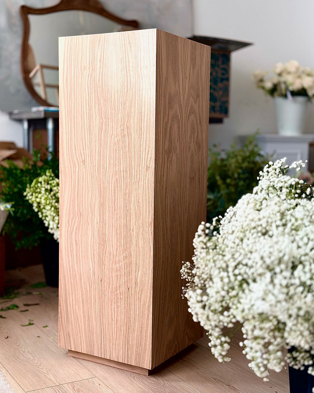 Elevate your space with the refined simplicity of our White Oak Pillar. Constructed from premium ¾” white oak plywood, this piece offers the warmth and texture of natural wood in a sleek, modern design. With sharp corners and clean lines, it serves as a versatile statement piece — ideal as a display pedestal, plant stand, or architectural accent in any room.